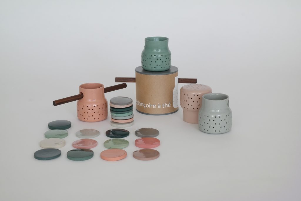 Balancoire à thé besteht aus mit Pigment angereichertem Steinzeug. Jede Farbe ist separat gemischt,  jedes Teesieb ein Unikat.