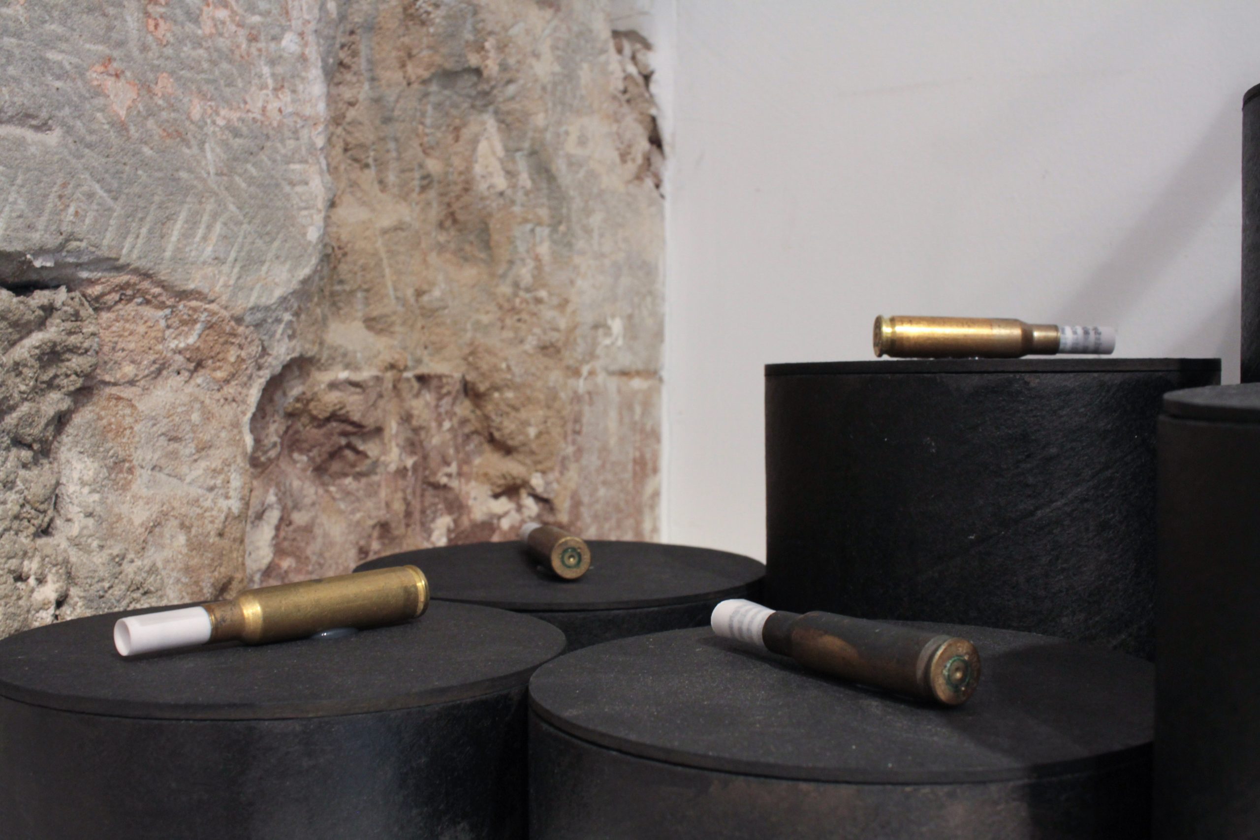 Die Innenseite zeigt die Spuren der Vergangenheit, während die Außenseite, geschliffen und poliert, die Ästhetik des vor kurzer Zeit behandelten Materials präsentiert. Messing altert, weshalb die Büchse regelmäßig gepflegt werden muss, will man ihr aktuelles Erscheinungsbild beibehalten. Das Konzept entstand mit dem überraschenden Fund auf dem Schrottplatz. Überbleibsel aus der Vergangenheit, mit einer absolut aktuellen Aussage. Büchsen sollen erinnern, appellieren, dankbar machen und zum Denken und Handeln anregen. Sie sollen uns ins Gedächtnis rufen, dass wir in einer Demokratie leben, in der wir mitverantwortlich sind für die Taten unseres Landes. Deutschland erwirtschaftet jährlich Milliarden von US Dollar durch Waffenexporte.